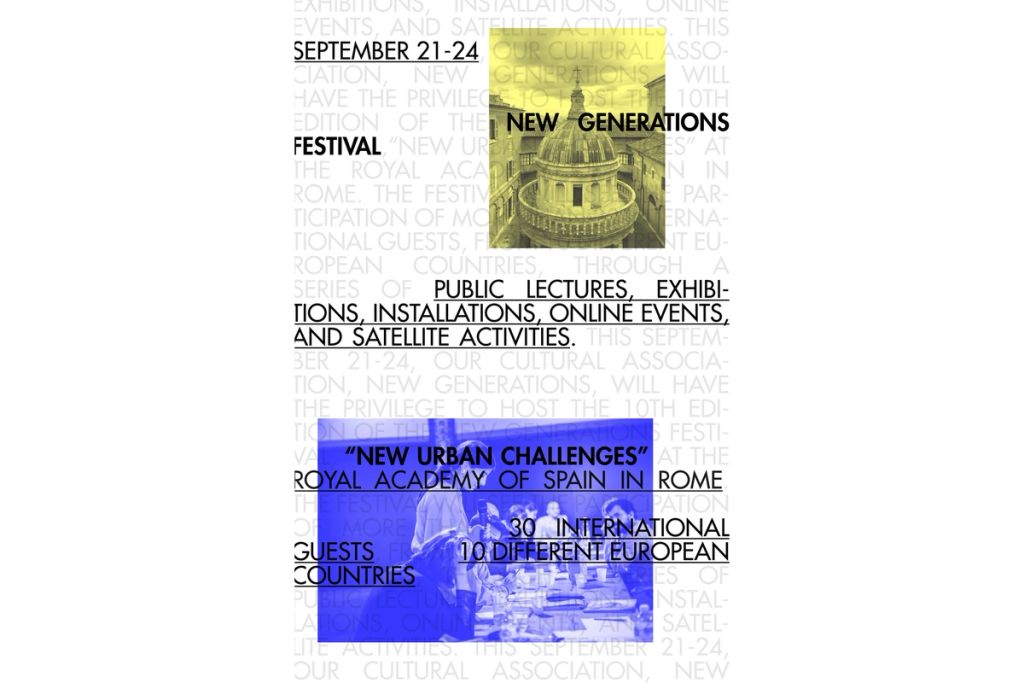 PAN- PROJECTS will be part of the New Generations Festival 2022. We will be one of the speakers at the 10x10challenges at the Royal Academy of Spain in Rome, next September 24. Titled “New Urban Challenges”, the Festival will see the participation of more than 30 international guests, from more than 10 different countries, through a series of public lectures, exhibitions, online events, and satellite activities.
