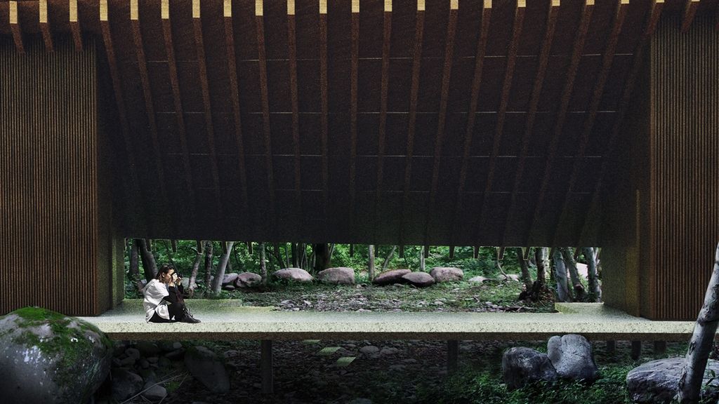 House T is a private residential project for a retired couple locates in northeast mountain region of Japan. The client purchased approximately 8,000m2 of forest adjacent to river Tone in order to create their own house for a modest life. We are commissioned to design the house as well as its landscape. The inspiration came from the nature of the site where various rocks are scattered across the forest. This unique character indicates that the forest was once a riverbed yet it turns into forest in long time. With this inspiration in mind, we imagined whether it would be possible to design a space for human beings in between the surfaces that one is lifted above the ground as if it's floating on water and other surface appears as if it’s flowing through the forest. The project is scheduled for completion in early summer 2023.